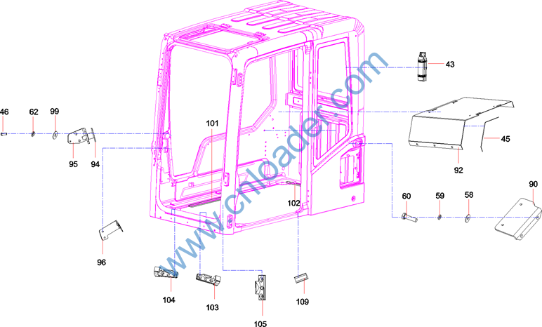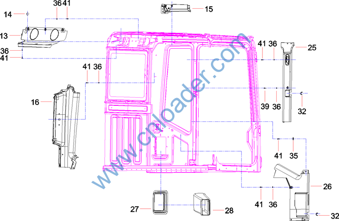 Frame assembly, front window |
