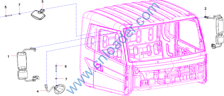 Mirror Assembly, Assistant, Driver’s Cab |
