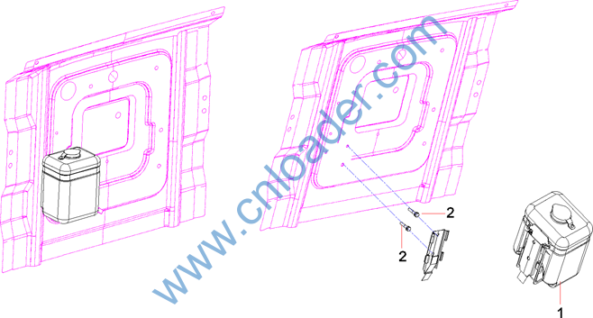 Washer Reservior Installation, Operator’s Cab |