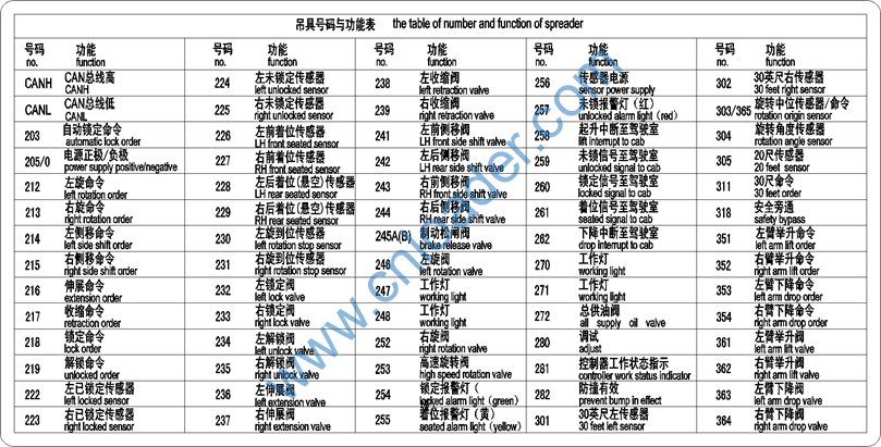 吊具号码和功能表