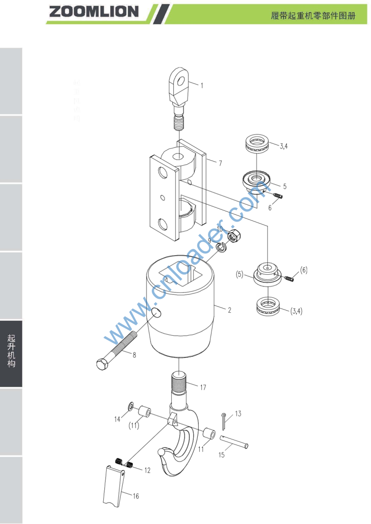 1040100121 螺钉 M1020-22H GB71-1985 00663104200410000 吊钩体 1040000050 螺栓 M24280-8.8 GB/T5782-2000