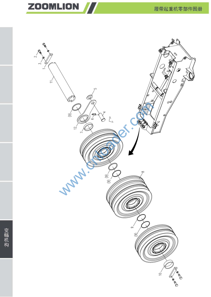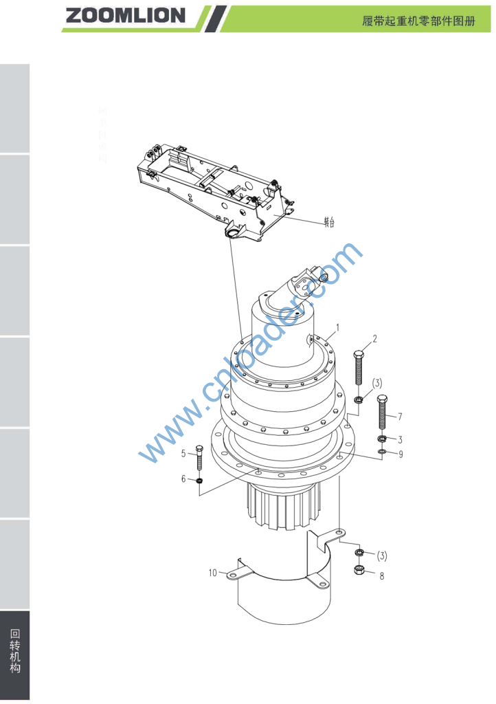 1040500047 销 570 GB/T91-2000 1040200215 螺母 M30-8 GB/T6178-1986 00663003700001030 垫圈 00663003700200001 棘爪 00663303700001040 衬套 1080000004 油杯 M101 GB1153-1979