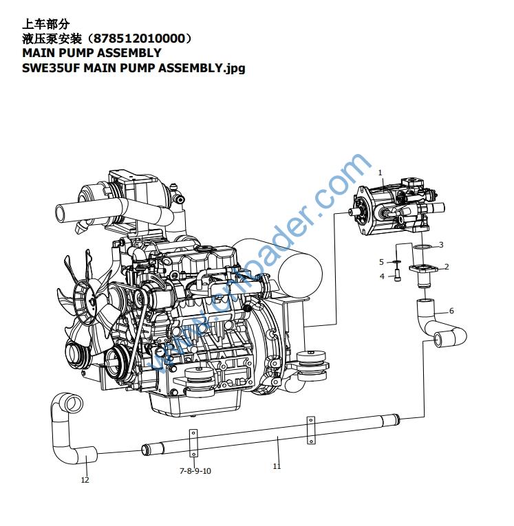 SWE35UF MAIN PUMP ASSEMBLY.jpg 2 878512010100 S2 MAIN PUMP SUCTION PIPE 主泵吸油钢管 1 101-