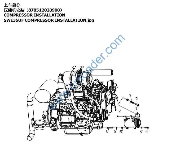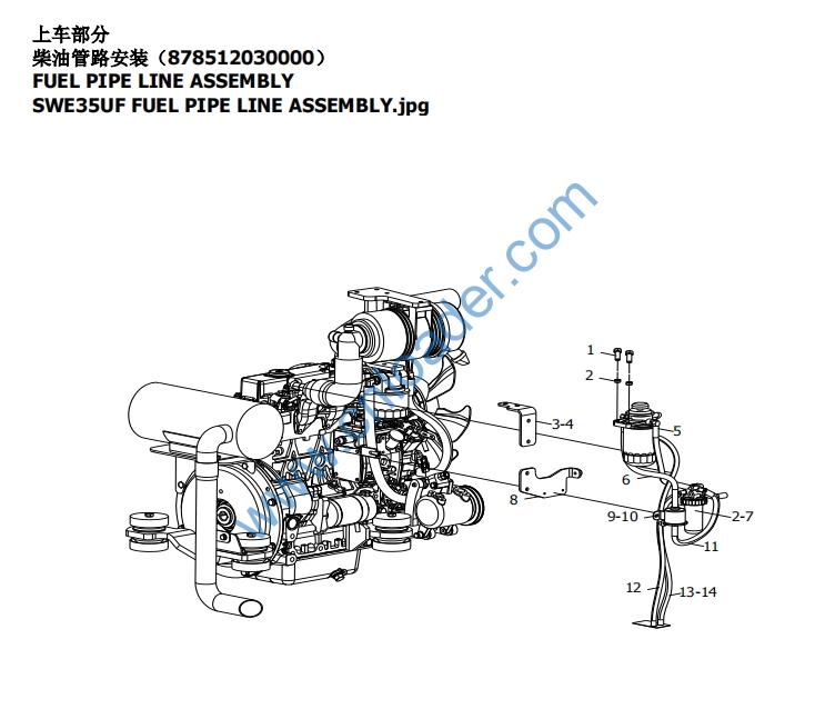 SWE35UF ENGINE ASSEMBLY.jpg 2 878512030000 S1 FUEL PIPE LINE ASSEMBLY 柴油管路安装 1 101-