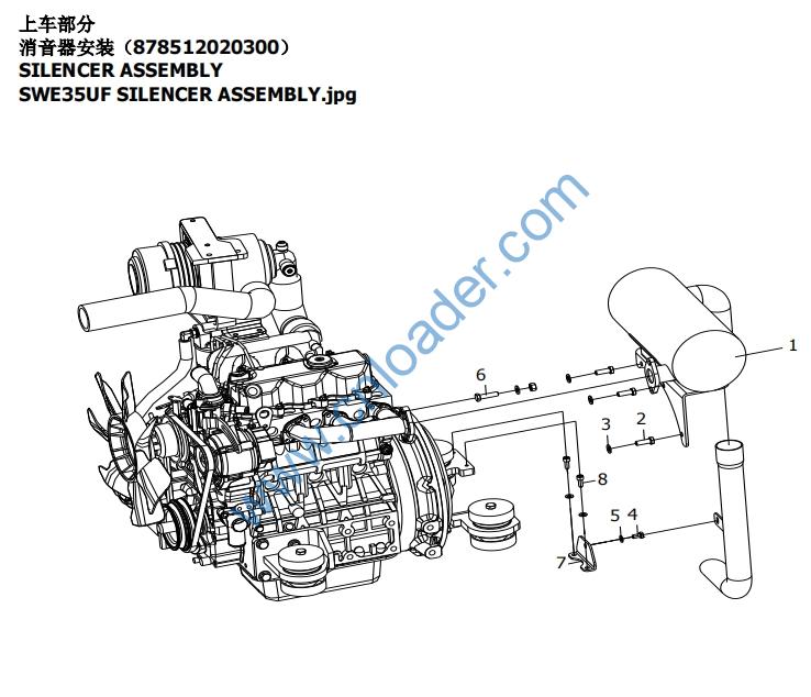 SWE35UF SILENCER ASSEMBLY.jpg 2 701104010007 1 BOLT 螺栓M10X30-10.9 GB/T 5783 3 101-