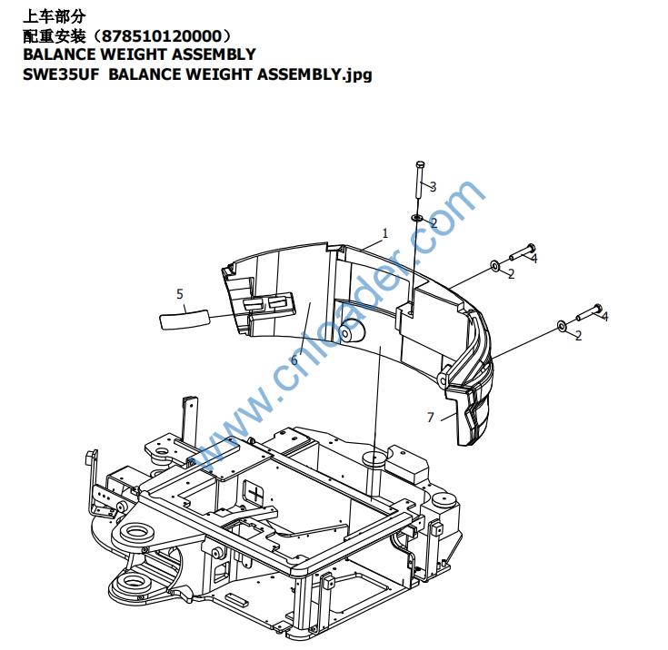 SWE35UF BALANCE WEIGHT ASSEMBLY.jpg 2 302010006578 S1 COUNTERWEIGHT MOUNTING PLATE 配重安装垫板 3 101-