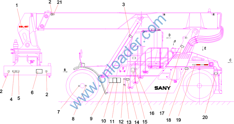Label, warning, dismantlement ounterweight |