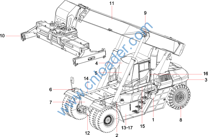 Subassembly, cab, container reach stacker |